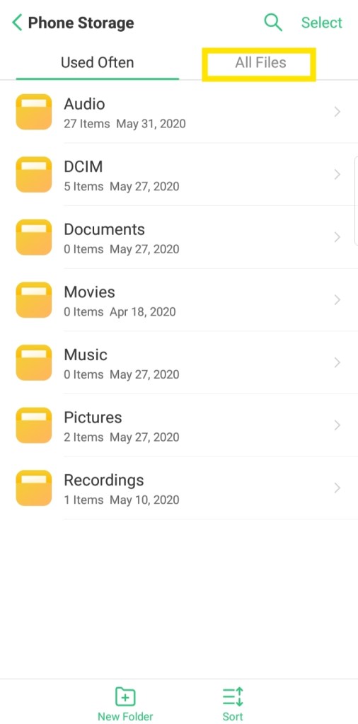 Step 3: After this, go to all files. Note: This is according to my mobile phone, you can follow the procedure according to your phone.